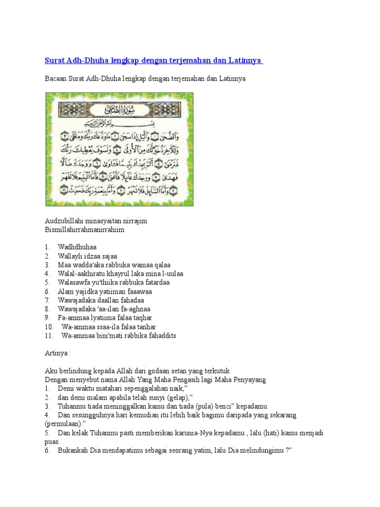 | Baca: Surat Ad Dhuha Ayat 1 11 Arab Latin Dan Arti Terjemahan Juz Amma |